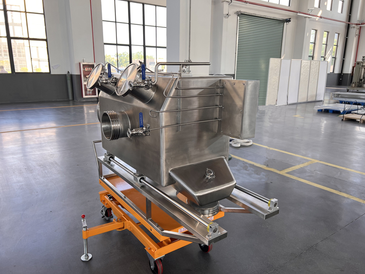 移动式投料器可上下升降和左右移动来匹配不同的反应釜最高可做到 OEB5 级的防护要求;